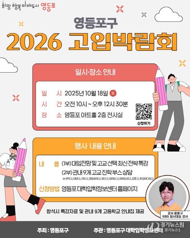 [경기뉴스원/경기뉴스1] | 영등포구가 10월 18일 오전 10시, 영등포 아트홀 전시실에서 중학생과 학부모를 위한 ‘2026학년도 고입박람회’를 연다고 밝혔다. 내달 시작되는 고입 원서접수를 앞두고 최선의 진학 선택을 돕기 위해 마련된 자리다.