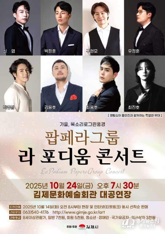 [경기뉴스원/경기뉴스1] | 깊어 가는 가을, 특별한 음악의 향연 팝페라 그룹'라 포디움 콘서트'가 오는 24일 오후 7시 30분 김제문화예술회관 대공연장에서 펼쳐진다.