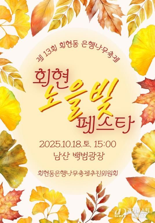 [경기뉴스원/경기뉴스1] | 제13회 회현동 은행나무축제 '회현 노을빛 페스타'가 오는 18일 오후 3시부터 7시까지 남산 백범광장에서 열린다.