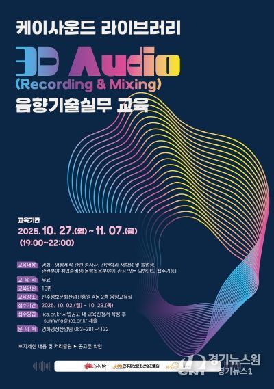 교육은 약 2주간 전주정보문화산업진흥원에서 진행되며, 영화·영상 제작 관계자와 음향 관련 재학생·졸업생, 관련 분야 취업준비생 등 누구나 신청할 수 있다.