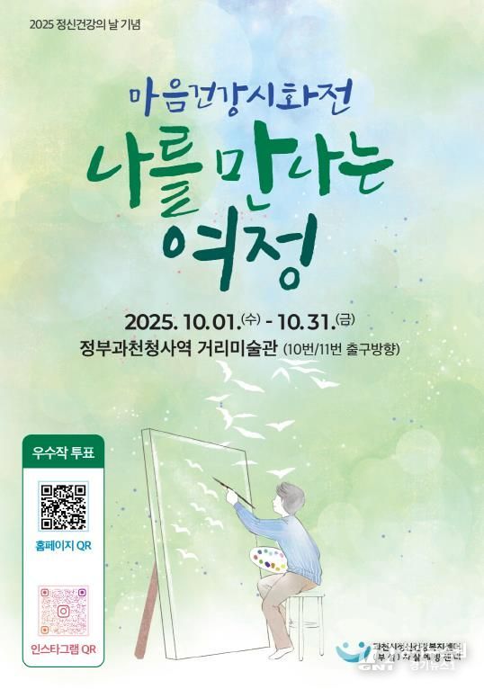 [경기뉴스원/경기뉴스1] | 과천시정신건강복지센터는 정신건강의 날을 기념하여 10월 한 달간 ‘마음건강 시화전-나를 만나는 여정’을 개최한다고 10일 밝혔다.