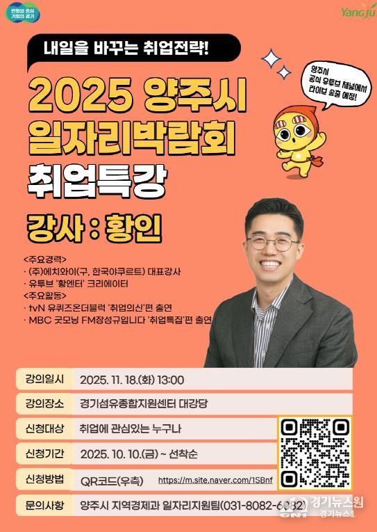 [경기뉴스원/경기뉴스1] | 양주시가 오는 11월 18일 오후 1시, 경기섬유종합지원센터 대강당(지하 1층)에서 ‘2025 양주시 일자리박람회 취업특강’을 개최한다.