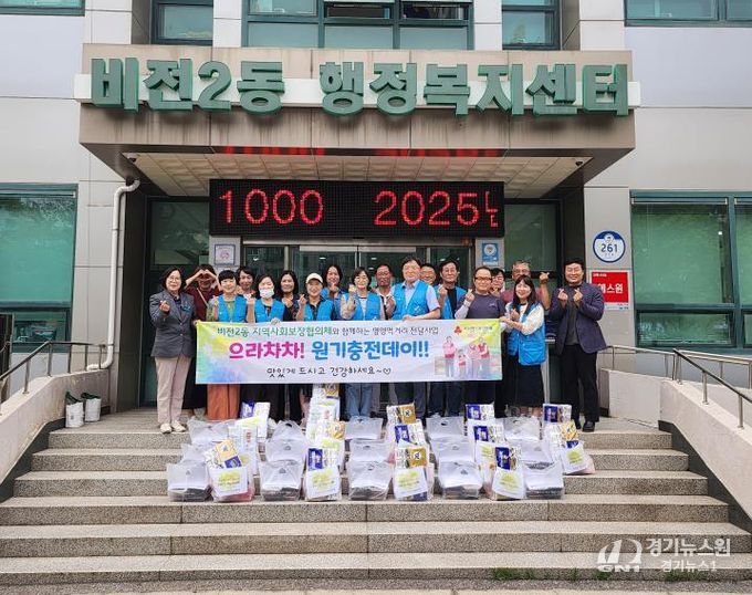 [경기뉴스원/경기뉴스1] | 평택시 비전2동 지역사회보장협의체는 지난 2일 지역 내의 홀로 사는 어르신 및 저소득 위기가정 15가구에 추석맞이 명절 먹거리를 전달하는 ‘으라차차 원기충전데이’를 추진했다.