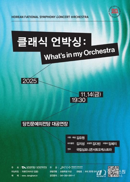 [경기뉴스원/경기뉴스1] | (재)당진문화재단·당진문예의전당은 오는 11월 14일 금요일 오후 7시 30분, 당진문예의전당 대공연장에서 국립심포니콘서트오케스트라 초청 공연‘클래식 언박싱 : What’s in my Orchestra’를 선보인다.