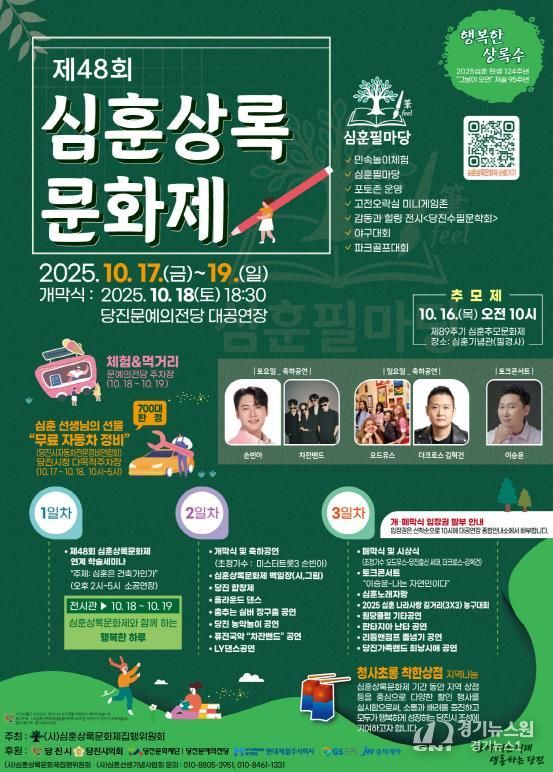 [경기뉴스원/경기뉴스1] | 당진시는 제48회 심훈상록문화제가 10월 17일부터 19일까지 사흘간 당진문예의전당 일원에서 열린다고 13일 밝혔다.