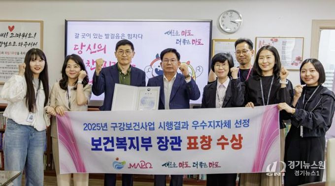 [경기뉴스원/경기뉴스1] | 마포구는 지난달 26일, 보건복지부와 한국건강증진개발원이 주관한 ‘2025년 지역사회 구강보건사업 성과대회’에서 우수기관으로 선정돼 보건복지부 장관상을 수상했다.