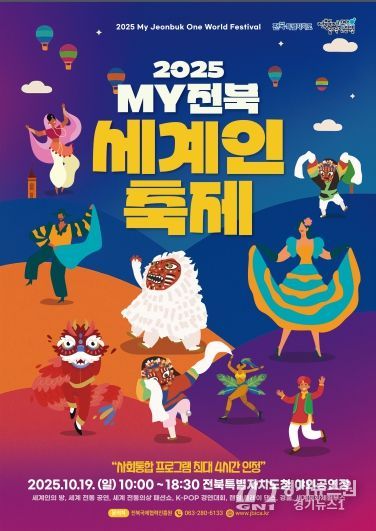 [경기뉴스원/경기뉴스1] | 전북국제협력진흥원이 주관하는 '2025 MY전북 세계인 축제'가 오는 10월 19일 오전 10시부터 오후 6시까지 전북특별자치도청 야외공연장 일대에서 개최된다.