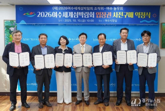 [경기뉴스원/경기뉴스1] | (재)2026여수세계섬박람회조직위원회는 지난 10일 여수시청 시장실에서 여수 농우회와 2026여수세계섬박람회 입장권 5,100만 원 규모의 사전 구매 약정을 체결했다고 밝혔다.