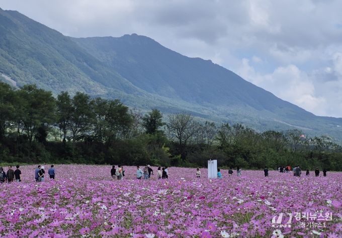 가조온천꽃단지는 연휴 기간 분홍빛․황금빛 코스모스가 만개하며 사진 명소로 큰 인기를 끌었다. 포토존과 커피쿠폰 이벤트, 치유프로그램 체험 부스 운영 등으로 방문객들의 만족도를 높였다.