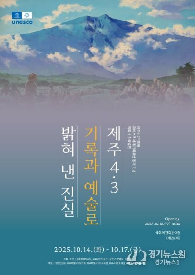 [경기뉴스원/경기뉴스1] | 제주특별자치도와 위성곤·김한규·문대림·정춘생 국회의원이 공동주최하는 ‘제주4·3, 기록과 예술로 밝혀낸 진실: 국회4·3특별전’이 오는 14일부터 17일까지 국회의원회관 2층(제2로비)에서 열린다.