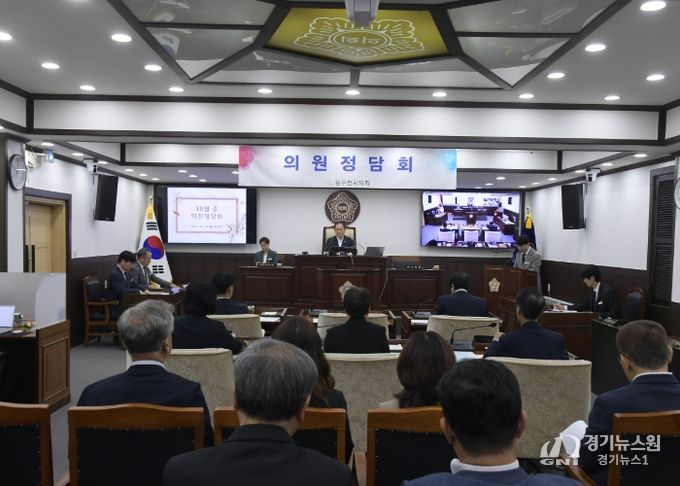 [경기뉴스원/경기뉴스1] | 동두천시의회는 10월 13일 2층 본회의장에서 ‘10월 중 동두천시의회 의원정담회’를 개최했다. 정담회에서는 시의 주요 현안과 정책 추진 방향을 공유하고 조례안과 2026년도 출자출연금 사전의결안, 사업 보고 등 다양한 안건에 대해 심도있는 논의가 이뤄졌다.