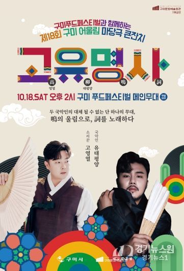 [경기뉴스원/경기뉴스1] | 구미시는 오는 18일 오후 2시 송정맛길(광평천 제5주차장)에서 ‘제18회 구미 어울림 마당극 큰잔치 '고유명사'’를 개최한다. 이번 행사는 작년에 이어 올해도 '구미푸드페스티벌'과 연계하여 추진되어 예산 절감은 물론 풍성한 축제 프로그램 구성 등 다양한 시너지 효과가 기대된다.