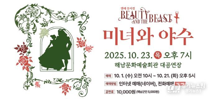 [경기뉴스원/경기뉴스1] | 해남군은 오는 10월 23일 오후 7시 해남문화예술회관 대공연장에서 발레뮤지컬 ‘미녀와 야수’공연을 선보인다.