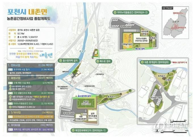 [경기뉴스원/경기뉴스1] | 포천시가 농림축산식품부가 추진한 ‘2025년 농촌공간정비 추가공모사업’에 선정되어, 2029년까지 내촌면 일원에서 추진할 공간정비사업 예산 129억 원을 확보했다.