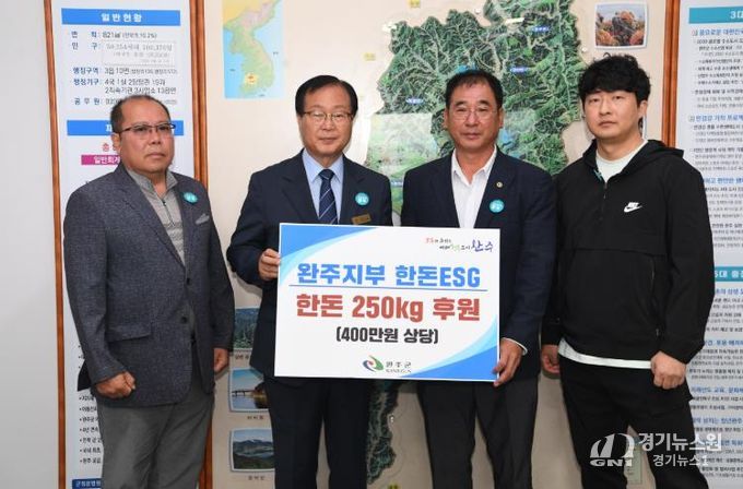 [경기뉴스원/경기뉴스1] | (사)대한한돈협회 완주지부가 완주군에 400만 원 상당의 돼지고기 전지 250kg를 전달했다.