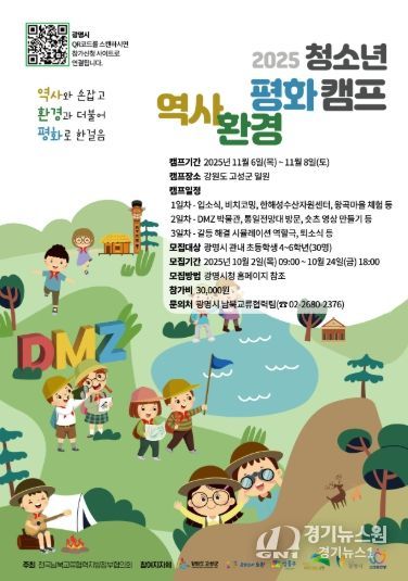 [경기뉴스원/경기뉴스1] | 광명시는 전국남북교류협력지방정부협의회가 주최·주관하는 ‘2025 청소년 역사·평화·환경캠프’에 참가할 청소년을 모집한다.