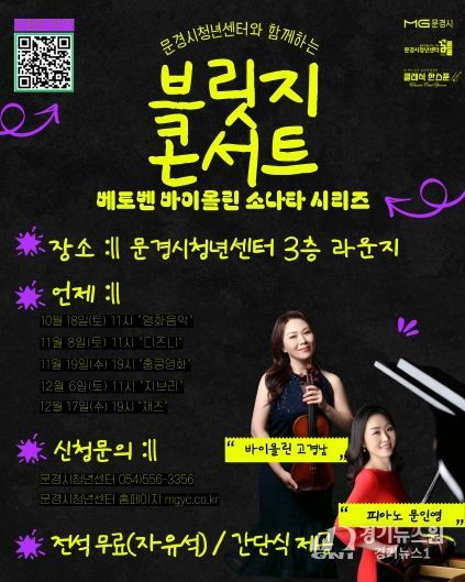 [경기뉴스원/경기뉴스1] | 문경시청년센터는 오는 10월부터 12월까지 문경시청년센터 3층 라운지에서 클래식을 주제로 한‘브릿지 콘서트’를 연다.