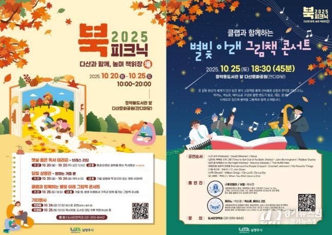 [경기뉴스원/경기뉴스1] | 남양주시는 10월 20일부터 25일까지 6일간 정약용도서관 앞 다산문화공원 잔디마당에서 ‘2025 북피크닉: 다산과 함께, 놀며 책읽장(場)’을 운영한다.