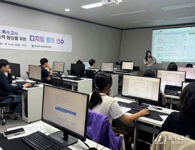[경기뉴스원/경기뉴스1] | 대구남부교육지원청은 10월 14일과 15일 이틀간 새빛캐드컴퓨터학원에서 남부특수교육지원센터 교사 15명을 대상으로 디지털 활용 연수를 진행했다고 밝혔다.