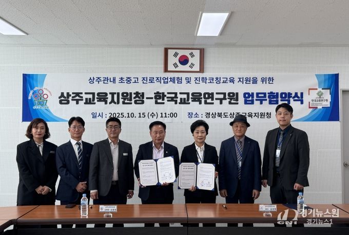 [경기뉴스원/경기뉴스1] | 경상북도상주교육지원청은 10. 15. 11:00, 교육지원청 2층 소회의실에서 『2025학년도 행복교육 실현을 위한 업무협약(MOU) 체결식』을 주관하고, 한국교육연구원과 함께 지역 학생들의 미래 역량 강화를 위한 공동 협력에 나섰다.
