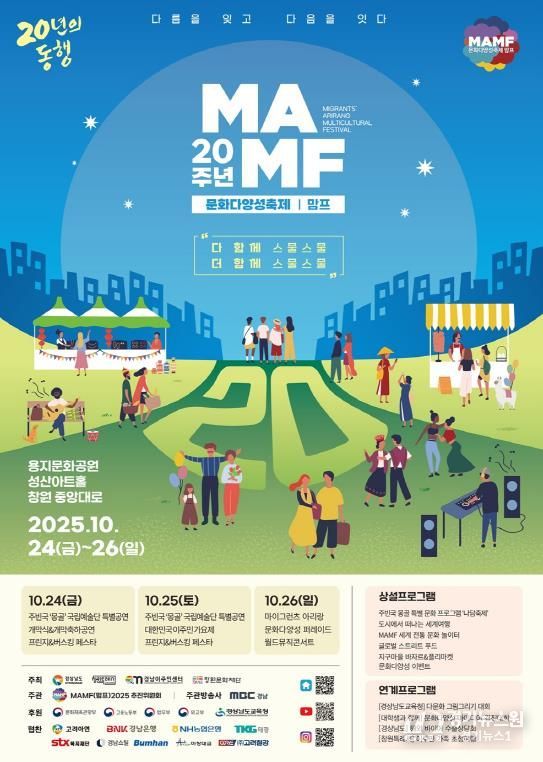 [경기뉴스원/경기뉴스1] | 창원특례시는 오는 10월 24일부터 26일까지 3일간 용지문화공원, 포정사공원, 성산아트홀, 중앙대로 일원에서 ‘제20회 문화다양성축제 MAMF(맘프)’가 개최된다고 밝혔다.
