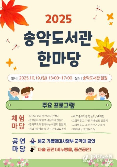 [경기뉴스원/경기뉴스1] | 제주도교육청 송악도서관은 19일 오후 1시부터 5시까지 도서관 일원에서 지역주민을 대상으로 ‘2025 송악도서관 한마당’을 운영한다.