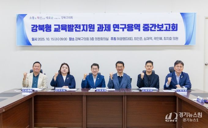 [경기뉴스원/경기뉴스1] | 강북구의회 의원연구단체인 ‘강북형 교육발전지원 연구회’ (대표의원 허광행)는 지난 10월 15일 의회 3층 의원회의실에서 중간보고회를 열었다.