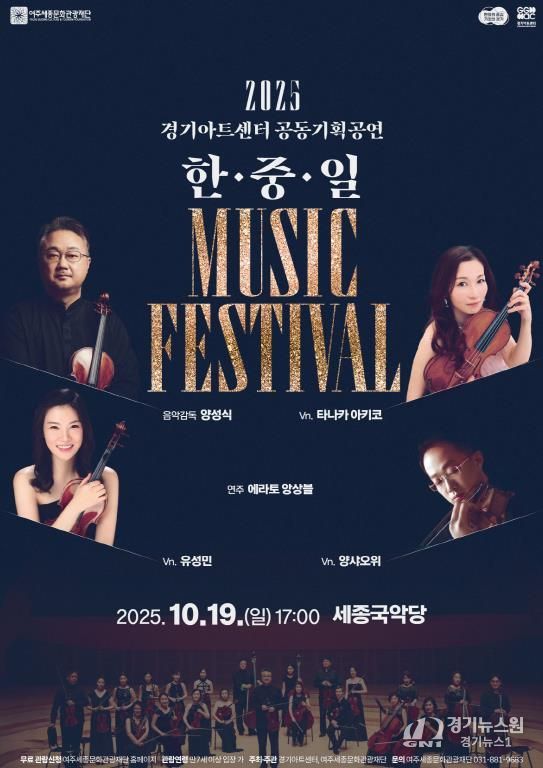[경기뉴스원/경기뉴스1] | 여주세종문화관광재단이 오는 10월 19일, 경기아트센터와 공동기획으로 ‘한·중·일 뮤직 페스티벌’을 세종국악당에서 선보인다.