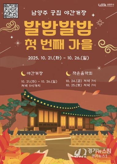 [경기뉴스원/경기뉴스1] | 남양주시는 오는 10월 21일부터 26일까지 남양주 궁집에서 야행 프로그램 ‘발밤발밤, 첫 번째 가을’을 운영한다고 밝혔다.