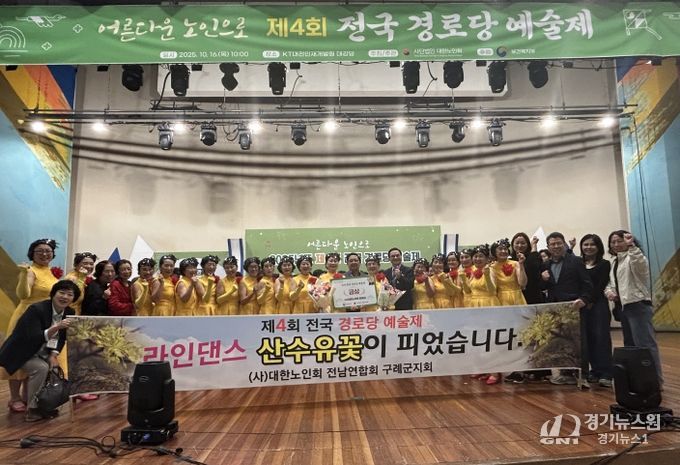[경기뉴스원/경기뉴스1] | 전남 구례군 노인회(라인댄스팀)는 (사)대한노인회가 주관한 2025년 제4회 전국 경로당 예술제에서 전라남도 대표로 참가해 금상을 받았다고 밝혔다.
