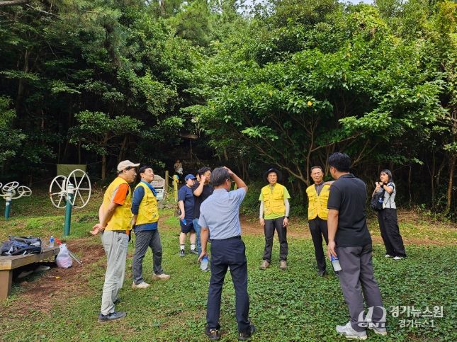 [경기뉴스원/경기뉴스1] | 제주국제자유도시개발센터는 17일 한국노인인력개발원과 함께 (사)느영나영복지공동체 소속 이음일자리 사업 참여자들이 활동 중인 저지오름과 금성포구 인근 해안가 현장을 방문했다.