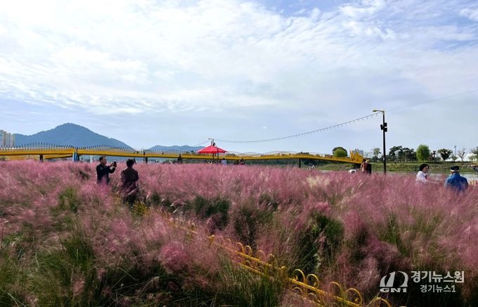 [경기뉴스원/경기뉴스1] | 장성군 황룡강 가을꽃축제 이튿날인 19일, 강변 곳곳마다 활짝 핀 가을꽃들이 방문객을 반기고 있다. 특히 용작교, 황룡정원 방면 백일홍과 연꽃정원 코스모스, 문화대교 인근 핑크뮬리가 아름답다.