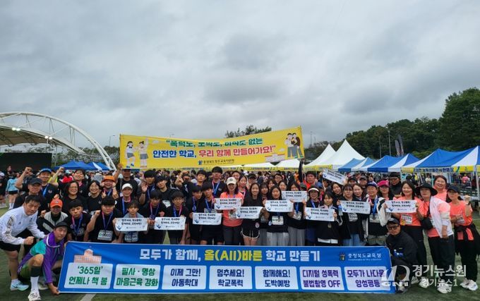 [경기뉴스원/경기뉴스1] | 충청북도교육청 인성시민과 교직원 44명이 18일, 제23회 청원생명쌀 대청호 마라톤 대회에 참가해 지역사회에 '모두가 함께, 올(All)바른 학교 만들기' 홍보에 나섰다.