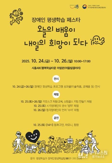 [경기뉴스원/경기뉴스1] | 시흥시는 오는 10월 24일부터 26일까지 3일간, 시흥ABC행복학습타운 아람관과 어울터 일원에서 ‘2025 장애인 평생학습 페스타’를 개최한다.