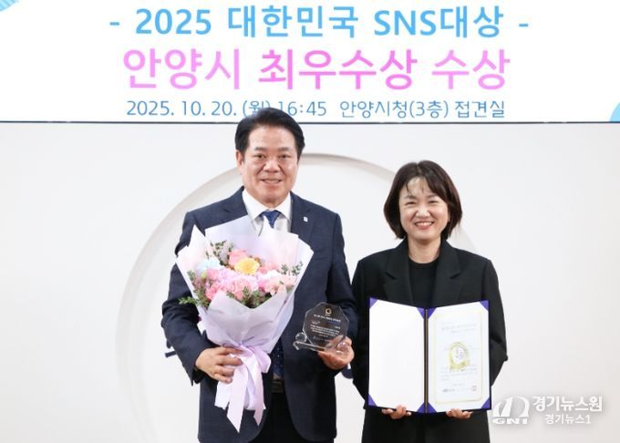 [경기뉴스원/경기뉴스1] | 안양시가 ‘제15회 2025 대한민국 SNS 대상’ 기초지방자치단체 시 부문에서 최우수상을 수상했다.