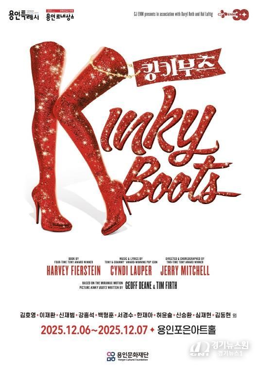 [경기뉴스원/경기뉴스1] | 용인문화재단은 오는 12월 6일부터 7일까지 용인포은아트홀에서 뮤지컬 ‘킹키부츠’를 선보인다. 이번 공연은 양일간 오후 2시와 7시, 총 4회 진행되며, 관람 연령은 만 8세 이상으로 미취학 아동은 입장이 불가하다.