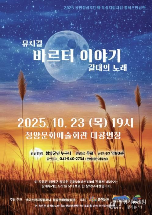 [경기뉴스원/경기뉴스1] | 청양군은 오는 23일 오후 7시 청양문화예술회관 대공연장에서 창작 뮤지컬 ‘바르터 이야기 갈대의 노래’를 선보인다.