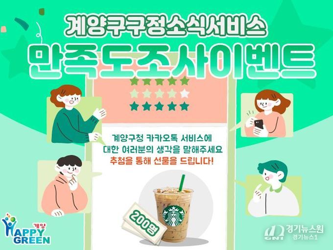 [경기뉴스원/경기뉴스1] | 인천광역시 계양구는 10월 22일부터 11월 5일까지 15일간 구정소식지 ‘계양산메아리’와 계양구청 카카오톡 채널에 대한 만족도 조사를 실시한다고 밝혔다.