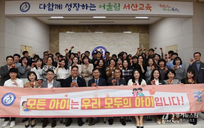[경기뉴스원/경기뉴스1] | 충청남도서산교육지원청은 21일 전 직원이 참여하는 '사과데이 나눔행사'를 열었다.