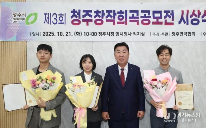 [경기뉴스원/경기뉴스1] | 청주시가 후원하고 (사)청주연극협회가 주최‧주관한 제3회 청주 창작희곡 공모전 시상식이 21일 임시청사 직지실에서 개최됐다.