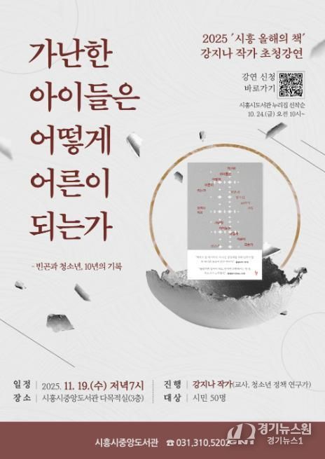 [경기뉴스원/경기뉴스1] | 시흥시 중앙도서관은 ‘2025년 시흥 올해의 책’으로 선정된 '가난한 아이들은 어떻게 어른이 되는가'의 저자 강지나 작가를 초청해 11월 19일 오후 7시 중앙도서관 3층 다목적실에서 시민 강연회를 개최한다.