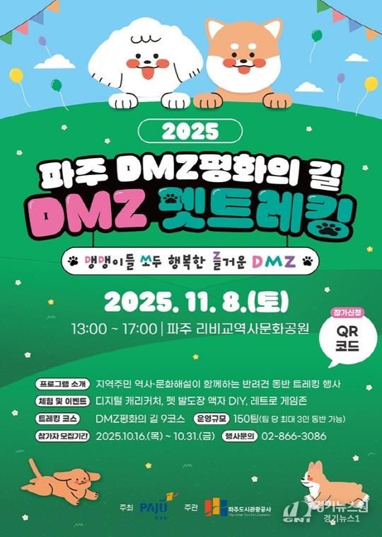 [경기뉴스원/경기뉴스1] | 파주시는 오는 11월 8일 파평면 리비교 역사문화공원에서 ‘디엠지(DMZ) 평화의 길 펫 트레킹’ 행사를 개최한다고 밝혔다.