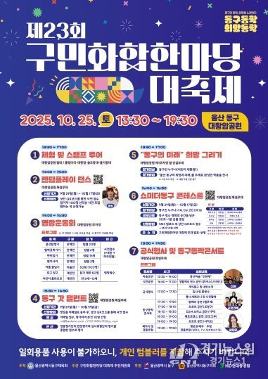 [경기뉴스원/경기뉴스1] | 울산 동구는 오는 10월 25일 오후 1시 30분부터 대왕암공원 일대에서 제23회 구민화합한마당 대축제를 개최한다.