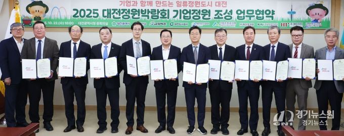 [경기뉴스원/경기뉴스1] | 대전시는 22일 대전시청 중회의실에서 ‘2025 대전정원박람회’의 성공적 개최를 위해 기업정원 조성 업무협약을 체결했다.