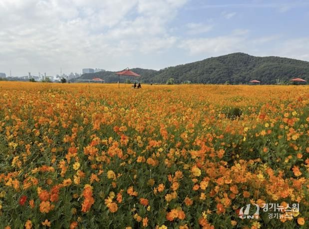 [경기뉴스원/경기뉴스1] | 용인특례시는 기흥구 공세동 364-1번지 일원에 위치한 기흥호수공원 내 황화코스모스가 만개해 가을 정취를 더하고 있다고 23일 밝혔다.
