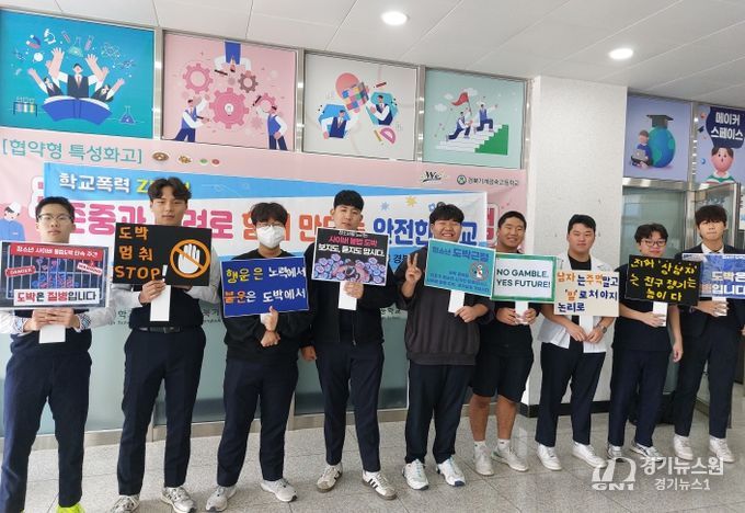 [경기뉴스원/경기뉴스1] | 경상북도경산교육지원청은 10월 21일 ~ 22일에 사동초등학교(교장 진현식)과 경북기계금속고(교장 박창범) 정문과 급식실 앞에서 각 학교의 학생자치회 학생과 함께 “학생 안전, 학교폭력예방, 도박예방 캠페인”을 실시했다.