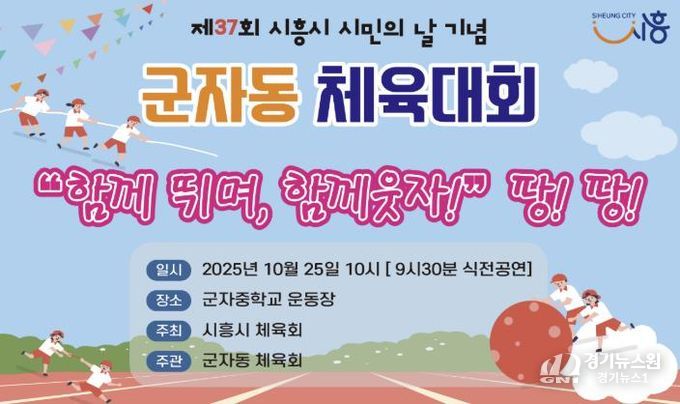 [경기뉴스원/경기뉴스1] | 시흥시 군자동 체육회는 제37주년 시민의 날을 맞아 오는 25일 군자중학교 운동장에서 ‘함께 뛰며, 함께 웃자’ 체육대회를 개최한다.