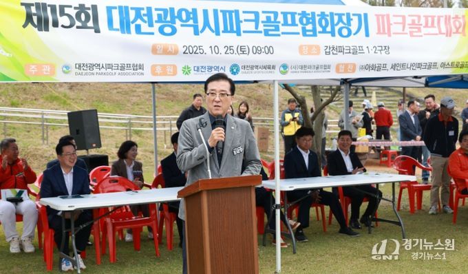 [경기뉴스원/경기뉴스1] | 대전시의회 조원휘 의장은 25일 갑천파크골프 1구장(유성구 탑립동)에서 개최된 제15회 대전광역시협회장배 파크골프대회에 참석해 안전한 대회 진행을 기원하며, 일류 체육도시 대전 조성을 위한 정책적 관심과 지원을 약속했다.