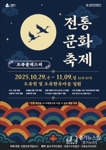 [경기뉴스원/경기뉴스1] | 강릉시와 강릉관광개발공사는 오는 10월 29일부터 11월 9일까지 오죽헌과 오죽한옥마을 일원에서 지역의 역사와 전통을 현대적으로 재해석한 『오죽클러스터 전통문화축제』를 개최한다.