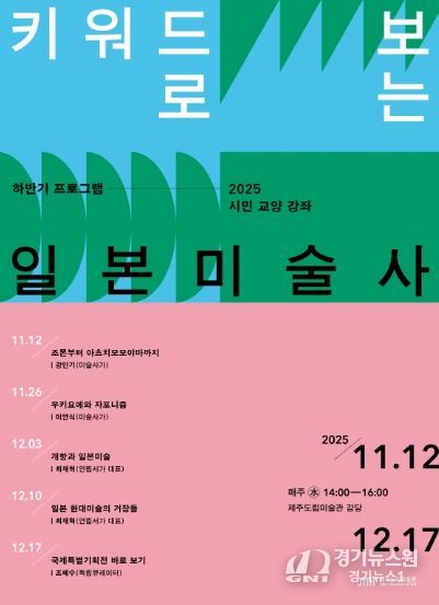 제주도립미술관은 11월 12일부터 12월 17일까지 수요일 오후 2~4시 미술관 강당에서 ‘2025 시민 교양 강좌’ 하반기 프로그램 '키워드로 보는 일본미술사'를 운영한다.